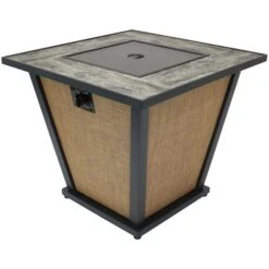 Sunnydaze 20 Inch Cast Stone And Weathered Wood Propane Fire Pit Table – Manual Ignition